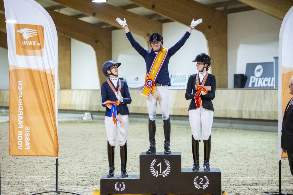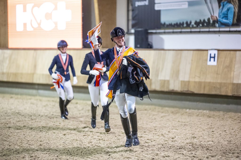 Tijdens het KNHS Indoorkampioenschap klasse L2 was de winst voor Jos Hogendoorn en de fijne merrie Rulana T. Na een ijzersterk indoor seizoen met meerdere paarden was dit de kers op de taart voor Jos! Prachtig voorgesteld, met een mooie aanleuning en veel harmonie straalde de elite merrie van Mansion uit Hulana T (Ampère).