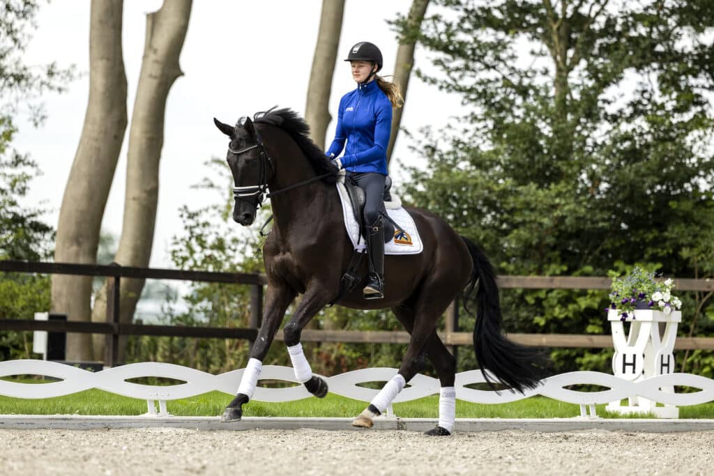 De enthousiaste Duitse Fena is sinds 2024 werkzaam op onze stal en rijdt verschillende (jonge) paarden en pony’s. Ze bracht haar 7 jaar oude merrie Scooby van Secret x Fidertanz mee naar DVB en hoopt met haar in de toekomst Lichte Tour te starten.